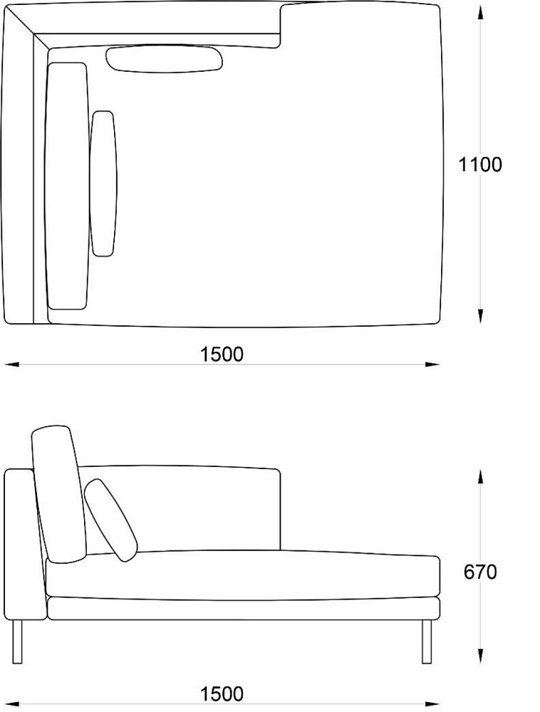 • Модуль лежанка Light левая 1100х1500хH670