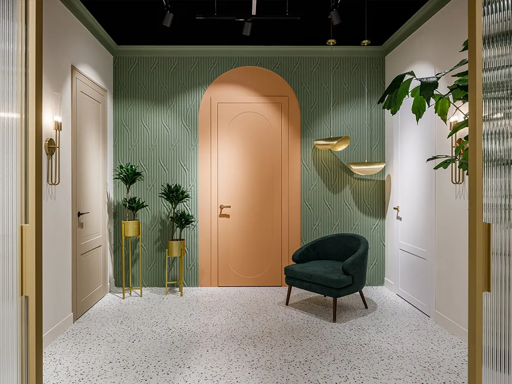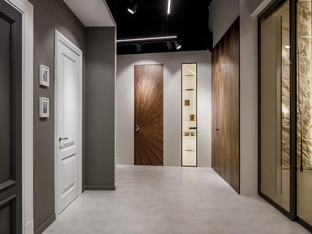 • Art Deco Collection: Линия, вдохновленная эпохой ар-деко, сочетает в себе элегантность и геометрическую строгость форм. Декоративные элементы из бронзы, хрома и хрусталя добавляют дверям особый шик.